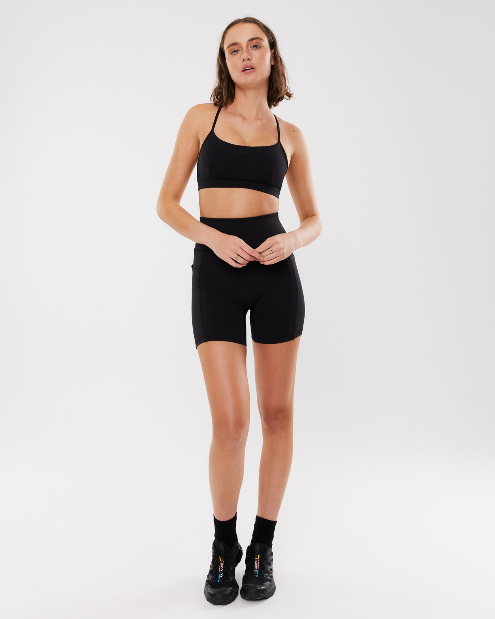 - Upstate rubber insignia at centre back waistband